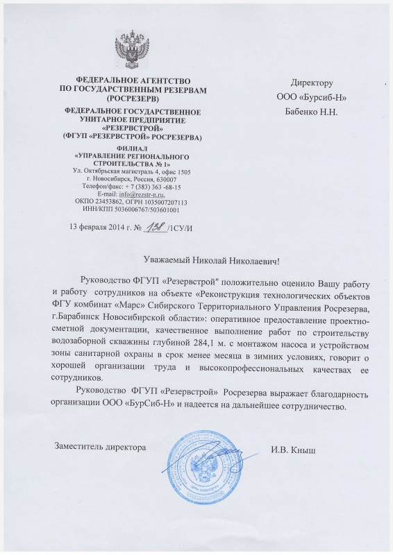 ФГУП РЕЗЕРВСТРОЙ РОСРЕЗЕРВА